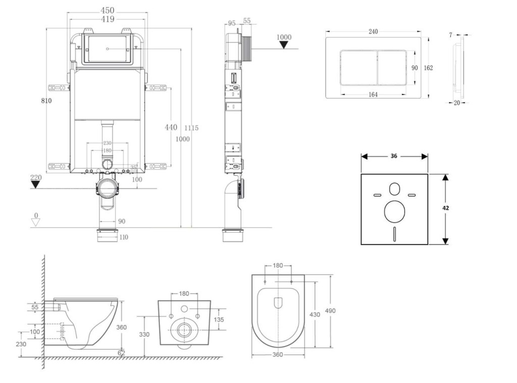 - Pre montáž závesného WC s pripojovacou roztečou 180 mm