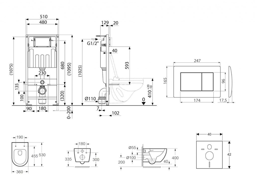 - Pre montáž závesného WC s pripojovacou roztečou 180 mm