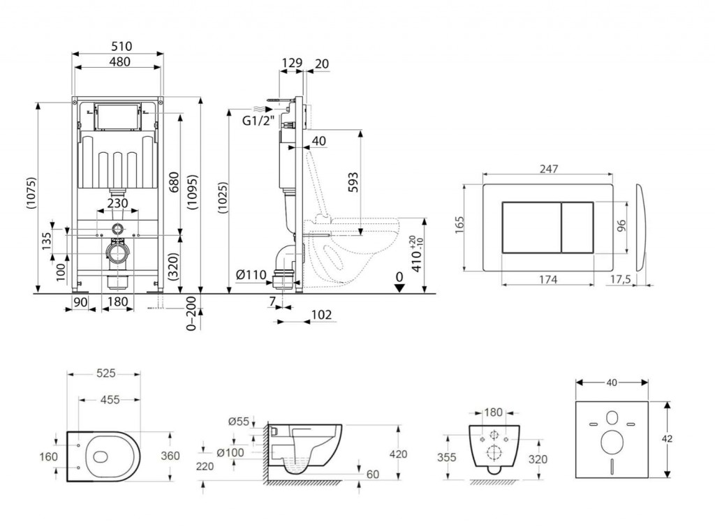 - Fixačný set na uchytenie WC misy: závitová tyč M12 – 2 ks, podložky – 4 ks, krytka – 2 ks, matica – 2 ks, chránička závitu – 2 ks
