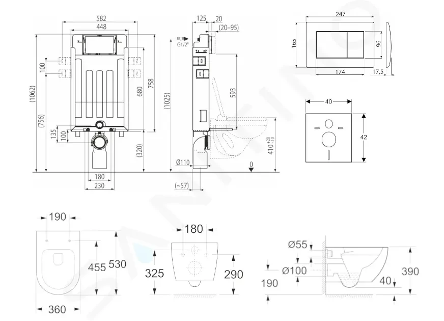 - Pre montáž závesného WC s pripojovacou roztečou 180 mm