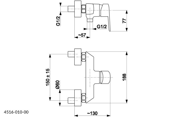 Nástenná sprchová batéria GERMAN od výrobcu KFA ARMATUR A s rozstupom 150 mm bez príslušenstva.
