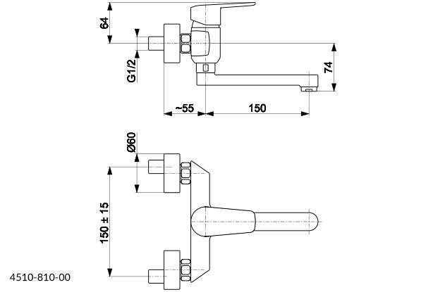 Nástenná umývadlová batéria GERMAN od výrobcu KFA ARMATUR A s rozstupom 150 mm. Výhodou je otočné ramienko s dĺžkou 150 mm a perlátorom.