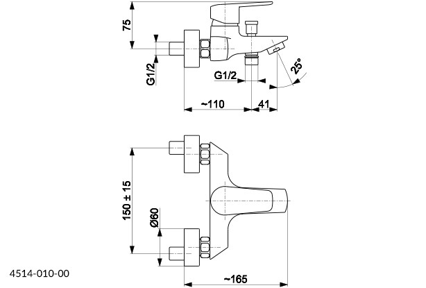 Nástenná vaňová batéria GERMAN od výrobcu KFA ARMATUR A s rozstupom 150 mm.
