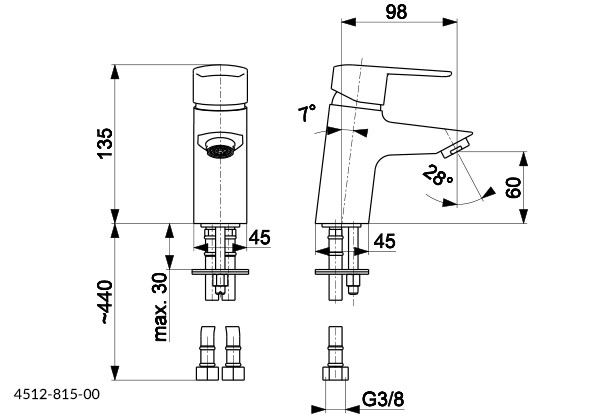 Umývadlovú batériu GERMAN si zamilujete. Pohodlne ju namontujete priamo na umývadlo a vďaka jej menšej výške 13,5 cm nebude voda nepríjemne odstriekavať do priestoru. Prúd vody tečie smerom od batérie, čo vám poskytne dostatok miesta na pohodlné umývanie rúk.