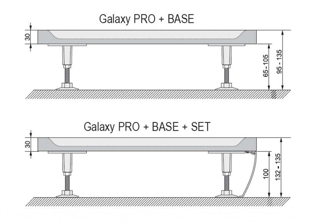 - samotná vanička na zapustenie do podlahy (bezbariérové riešenie), alebo na inštaláciu na podlahu