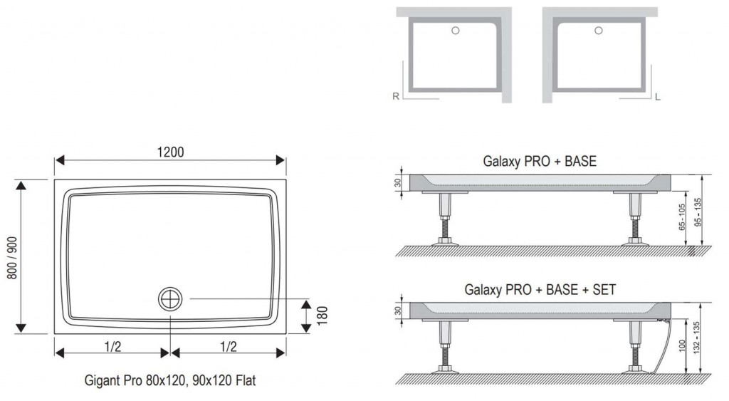 - vanička + BASE + SET, s nožičkami, a čelnom a bočnom krycím panelom (SET L / SET R)