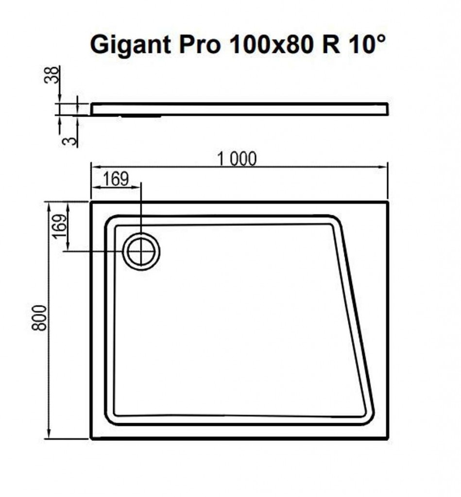 Sprchová vanička Gigant Pro R rozmery: 1000 x 800 mm materiál: liaty mramor, farba: biela inštalačná výška: 38 mm hĺbka: 15 mm priemer sifónu: 90 mm prevedenie: pravá varianta vaničkový sifón, nožičky a montážne príslušenstvo nie sú súčasťou balenia… (celý popis)