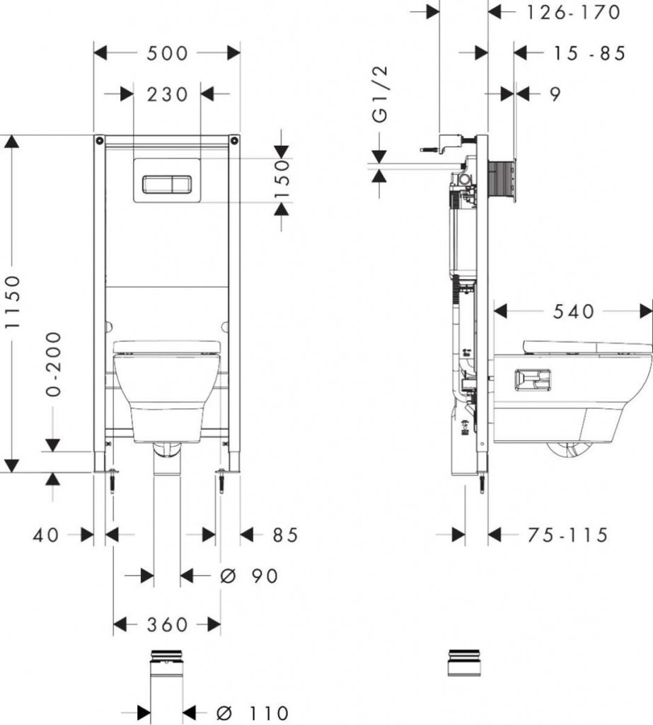 - nastaviteľná hĺbka vypúšťacieho potrubia: 75 - 115 mm