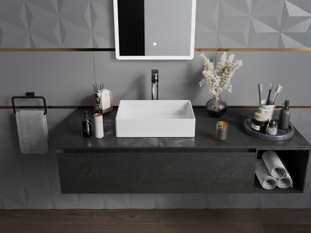Keramické umývadlo na dosku GOYA od výrobcu MEXEN doplní akúkoľvek kúpeľňu a dodá jej neuveriteľný šmrnc modernosti. Jeho štíhle hrany vytvárajú perfektný minimalistický dizajn . Môžete ho namontovať na dosku alebo na kúpeľňovú skrinku a zároveň tak ušetriť drahocenný priestor. Umývadlo je dostupné v troch farebných variantoch: čierna, šedá a biela. Pokiaľ vám nevyhovuje ani veľkosť, vyberte z 35x35, 40x32, 45x32, 51x37 a 60x37 cm.