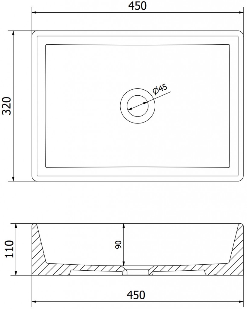Samotné umývadlo na dosku je dlhé 45 cm a hlboké 32 cm , čo nabáda k tomu, že je možnosť umiestnenia dvoch umývadiel vedľa seba /pokiaľ vám priestor dovolí/. Umývadlo nemá bezpečnostný prepad ani otvor pre kohútik. Preto k nemu vyberajte vysokú umývadlovú batériu alebo podomietkovú umývadlovú batériu . Vždy sa snažte vyberať takú, aby ústie kohútika smerovalo doprostred umývadla. Jedine tak zabránite nechcenému rozstrekovaniu vody a zároveň budete mať dostatok priestoru na umývanie rúk.