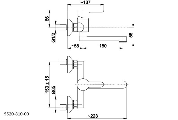 Nástenná umývadlová batéria GRANAT od výrobcu KFA ARMATUR A s rozstupom 150 mm. Výhodou je otočné ramienko s dĺžkou 150 mm a perlátorom.