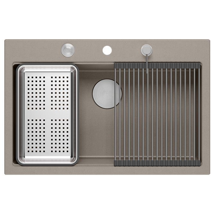 Granitový drez so svojim minimalistickým, moderným vzhľadom hodí do aranžmánu každej kuchyne. Hlboká a priestranná komora zaisťuje vysoký komfort používania. Drez, ktorý ponúkame, je skvelou voľbou pre zákazníkov, ktorí ocenia kvalitu a spracovanie. Nadčasový tvar, použitie prvotriednych materiálov a technológií, skvelý dizajn a kompatibilita použitých riešení zaručujú dokonalý konečný výsledok a vyplnia každý kuchynský priestor. K dispozícii sú rôzne farebné varianty. Tento model je veľmi bohato vybavený doplnkovými kuchynskými doplnkami. Drez je dodávaný s dávkovačom tekutín, bambusovou doskou, odkvapkávačom a valcovanou oceľovo-silikónovou podložkou (nie je súčasťou sady v zlatej a medenej variante).