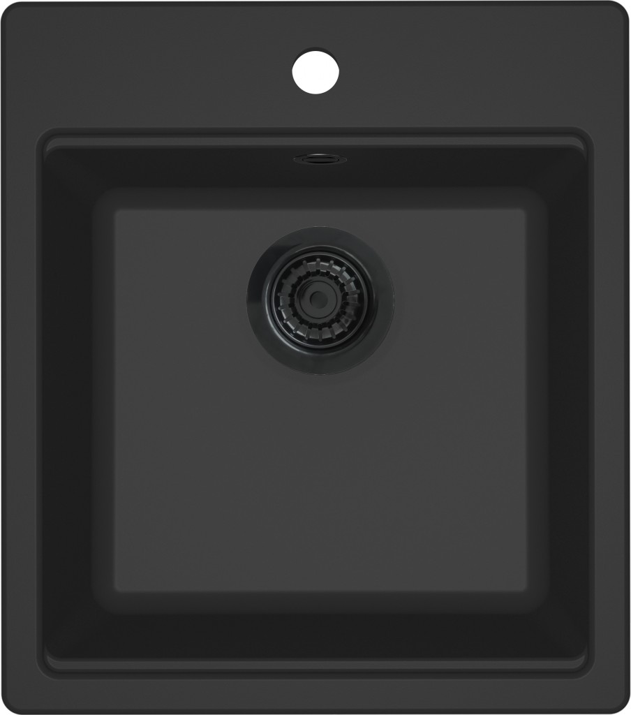 Granitový drez 45x51 cm, povrch čierny Nero Black, horná montáž