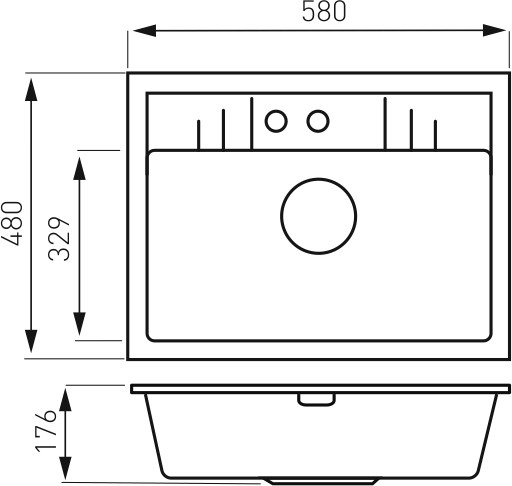Granitový drez s prepadom. Drez má rozmery 58x48 cm a hĺbku 17,6 cm. Automatické otváranie a zatváranie výpuste gombíkom. Súčasťou balenia je sifón. Predĺžená záruka 15 rokov.(GT)