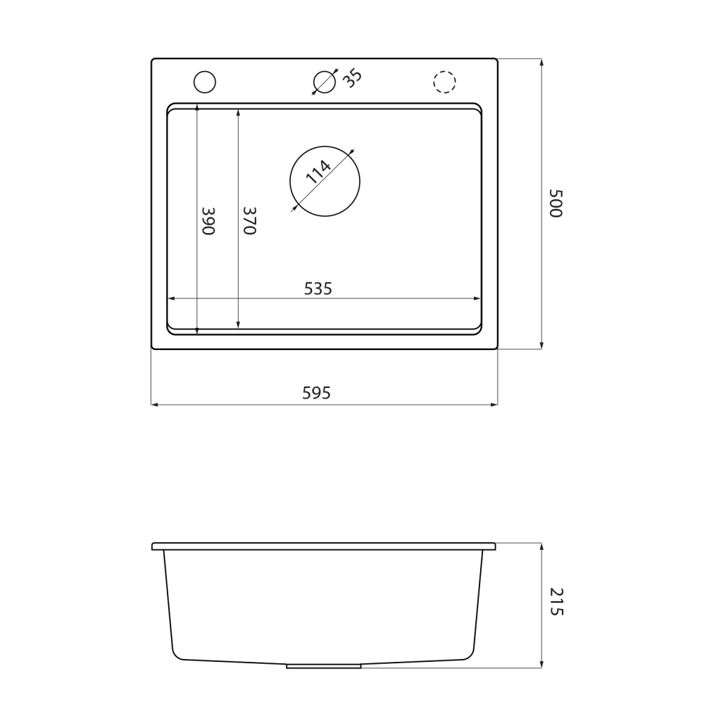 Drez je usadený na pracovnú dosku a hranou ju prevyšuje. |