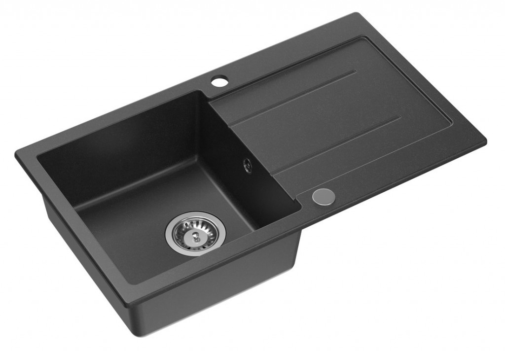 SAMONA - Granitový zabudovateľný drez s odkvapom, 77x44cm, čierna (30874504)