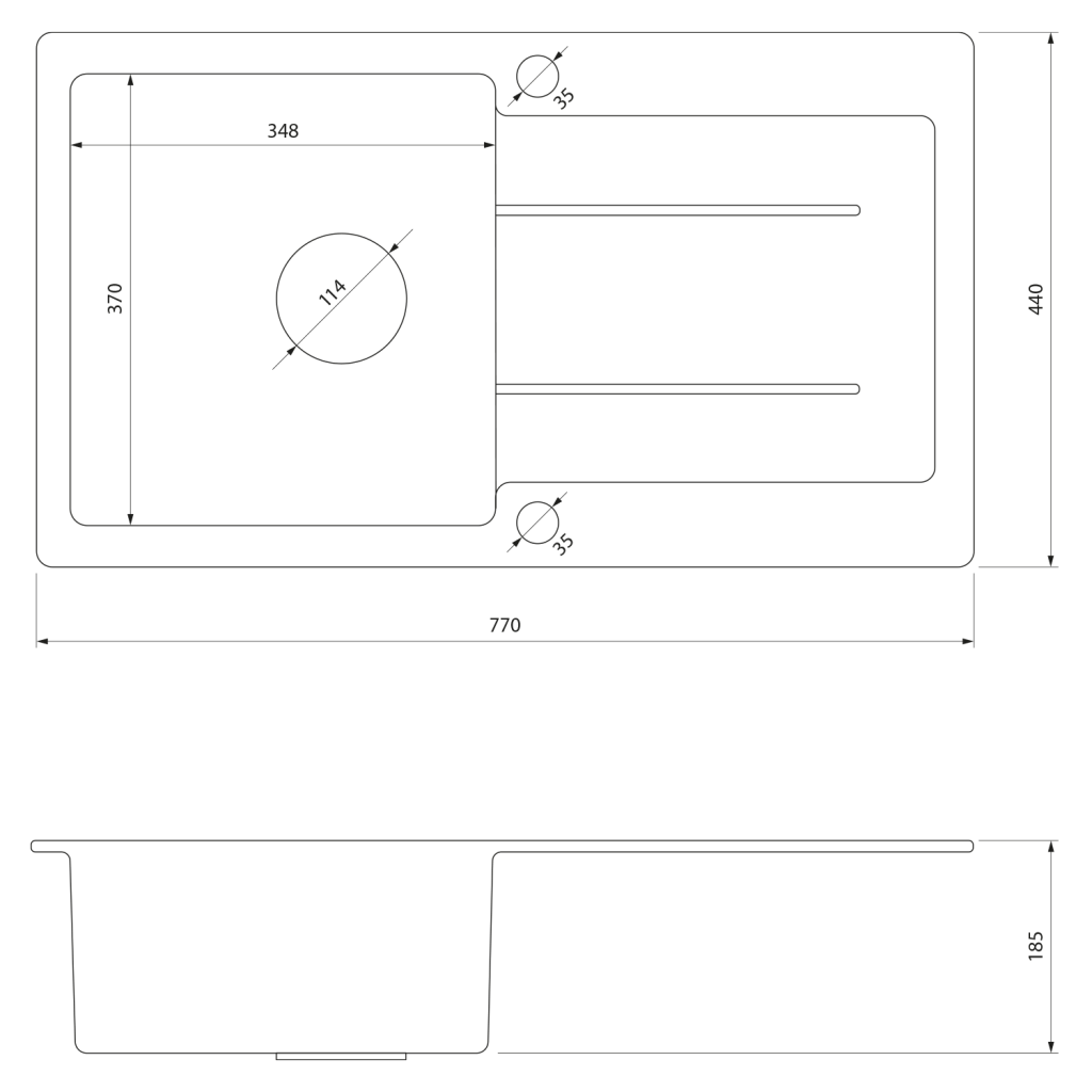Drez je usadený na pracovnú dosku a hranou ju prevyšuje. |