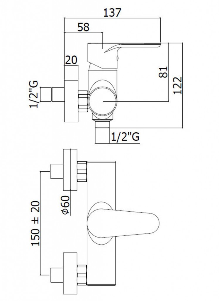 Sprchová nástenná páková batéria vrátane ručnej sprchy, držiaku a flexibilné hadice