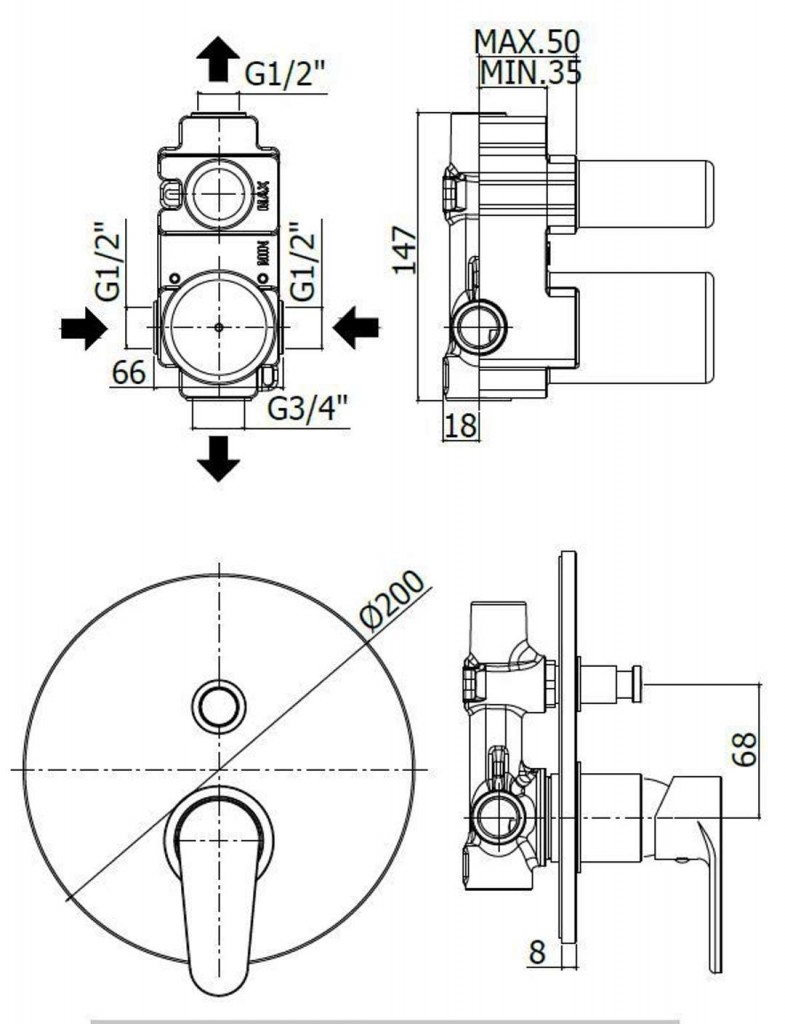 - spodné pripojenie 3/4 "G
