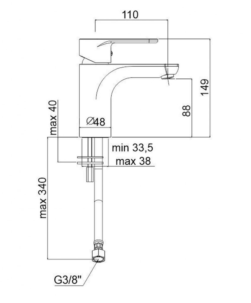 - dĺžka ramienka 110 mm, komfortná zóna 88 mm