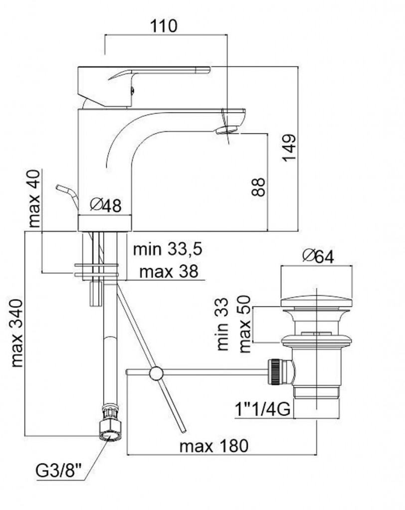 - dĺžka ramienka 110 mm, komfortná zóna 88 mm