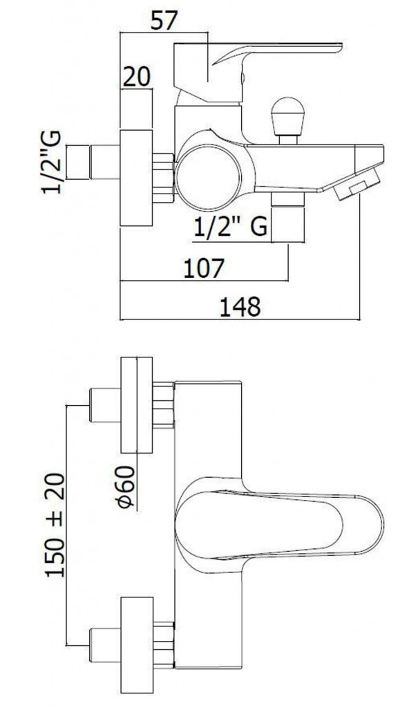 Vaňová nástenná páková batéria bez sprchového príslušenstva
