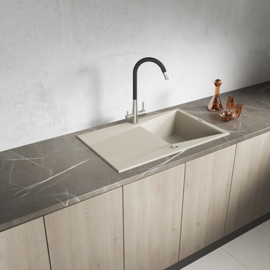 Rad Grenada – charakteristický dizajn od Márie Kubiak, ktorá je zodpovedná za portfólio drezov Laveo – je unikátnym novým prírastkom do ponuky značky. Drezy boli navrhnuté tak, aby slúžili predovšetkým dekoratívnym účelom, nad rámec svojich zjavných „kuchynských“ funkcií. Grenada je minimalistický šperk pre modernú kuchyňu. Jednoumiskový drez s odkvapkávačom vyniká svojim jednoduchým, takmer strohým tvarom. Verzia s jedným drezom má asymetrický tvar, ktorý drezu dodáva jedinečný charakter. Prepracované detaily v doplnkoch, ako je hladký kryt sitka a pneumatická zátka odtoku určená pre prémiové drezy, ďalej umocňujú eleganciu drezu. Značka ponúka dva modely, každý v troch povrchových úpravách: béžovej, šedej a čiernej. Drezy sú vyrobené zo žuly, ktorá zaručuje odolnosť proti poškriabaniu, zmene farby, tepelným šokom a vysokým teplotám (až 250 ° C). Povrch drezu je jednotný, hladký a bez viditeľných zárezov a priehlbín, čo umožňuje voľný odtok vody do drezu, čo uľahčuje čistenie. Rad Grenada sa perfektne hodí do moderných kuchýň. Drezy sa dodávajú s 10-ročnou zárukou a sú vybavené sifónom pre úsporu miesta v skrinke.