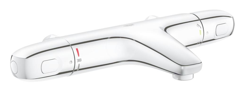 S touto termostatickou batériou nebudete musieť teplotu vody upravovať neustálym pridávaním studenej alebo teplej vody. Rukoväte sú ergonomicky navrhnuté tak, aby vám umožnili bez námahy zvoliť ideálnu teplotu vody. Ovládač prúdu GROHE aquadimmerom zároveň obsahuje integrovaný prepínač, ktorý umožňuje plynulo prepínať medzi vaňovou výpustí a sprchou. Tlačidlo GROHE SafeStop zabraňuje nechcenému zvýšenie teploty a chráni tak vašu pokožku pred popálením, zatiaľ čo tlačidlo GROHE EcoButton môže slúžiť na obmedzenie spotreby vody. Technológia GROHE CoolTouch zabraňuje nadmernému zahriatiu povrchu termostatické batérie a chráni tým vás a vašu rodinu pred popálením.