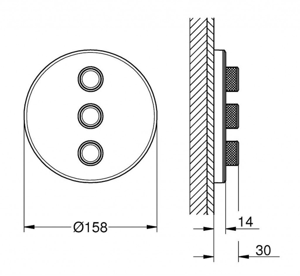 - kovová rozeta s GROHE QuickFix (krytá rozeta s tesnením, skryté pripevnenie), nastaviteľná ± 6 °