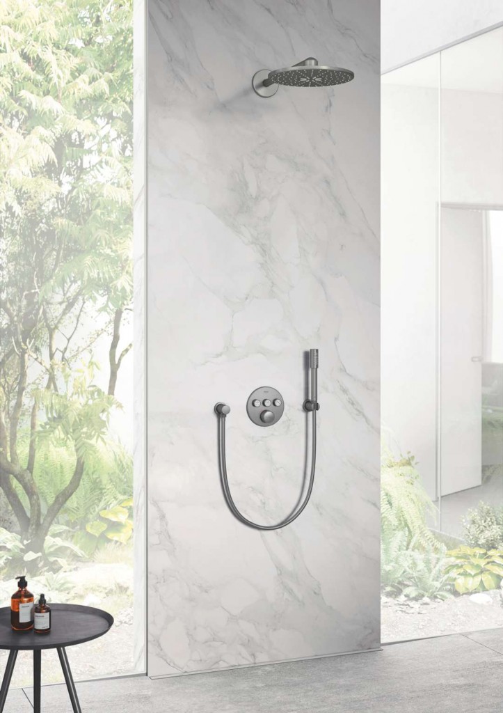 - GROHE SmartControl tlačidlo ON-OFF, ovládanie prúdu od EcoJoy do plného prúdu Full Flow
