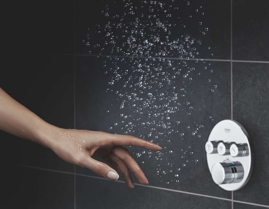 - GROHE SmartControl tlačidlo ON-OFF, ovládanie prúdu od EcoJoy do plného prúdu Full Flow