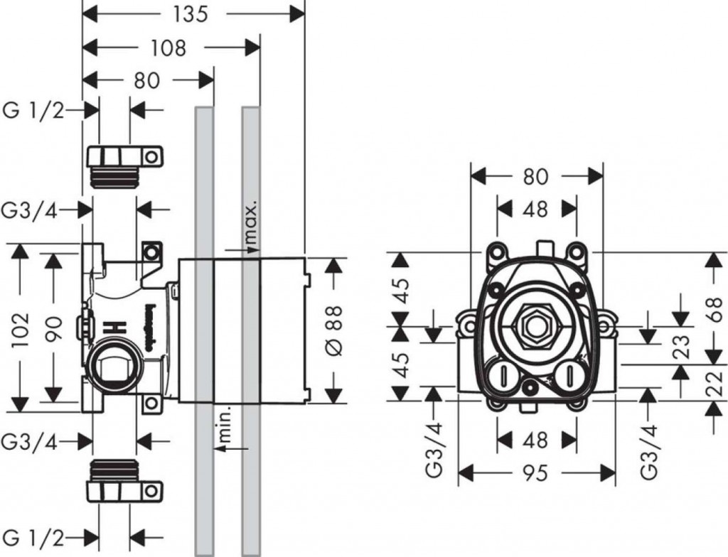 - pri priamom prepojení slúži ako prívod vody ak presnému dodržanie mier montáže