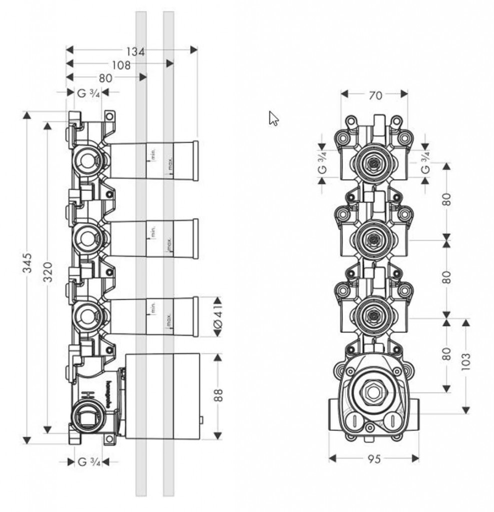 - pri priamom prepojení slúži ako prívod vody ak presnému dodržanie mier montáže