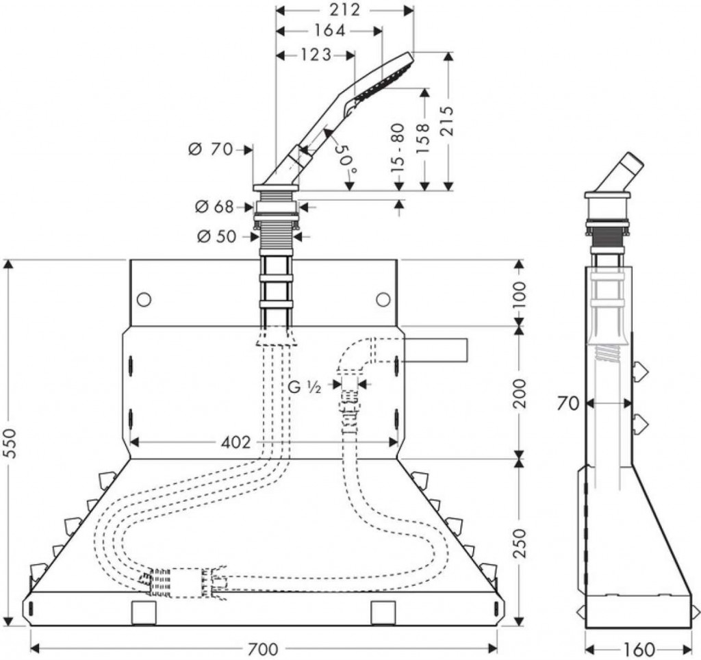 - vhodná pre montáž na okraj vane alebo vaňový sokel (montážna doska nie je súčasťou dodávky)