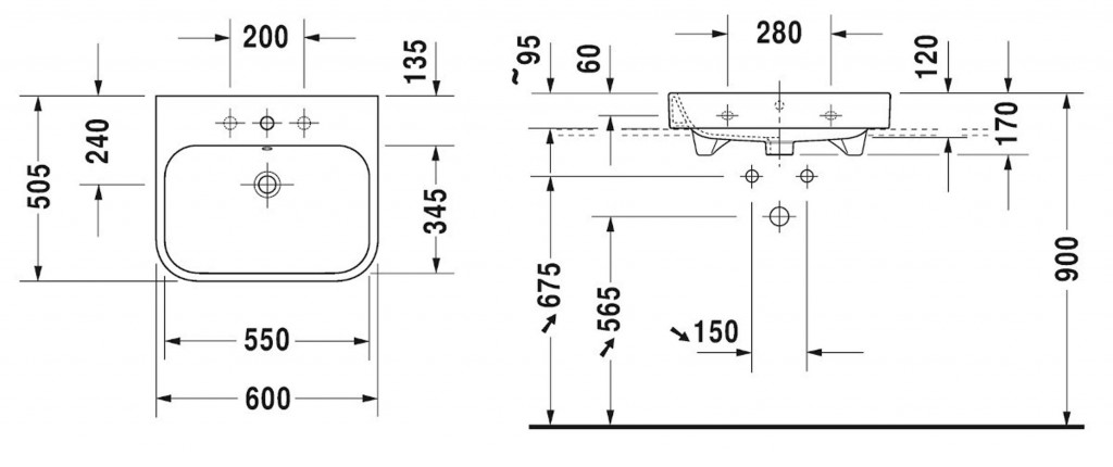 - s 1 otvorom pre umývadlovú batériu