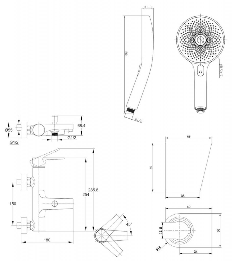 - AntiTwist - systém proti prekrúteniu, ktorý je ukrytý v kónuse sprchovej hadice