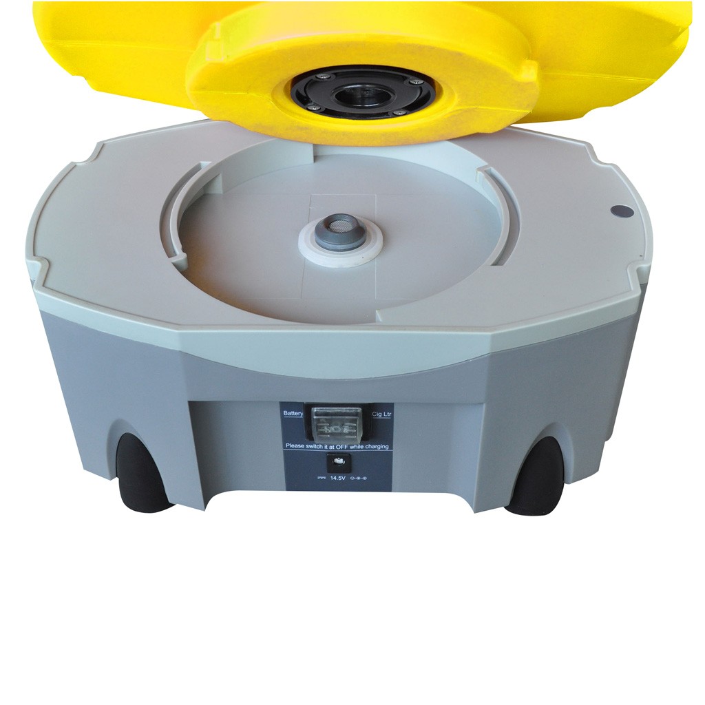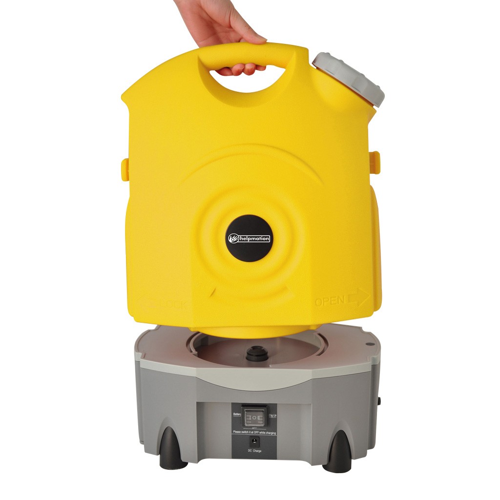 Pri plnom nabití vystačí kapacita batérie na vyprázdnenie štyroch plných zásobníkov vody. Prenosnú umývačku Helpmation môžete používať na batériu, alebo zapojenú do zásuvky autozapaľovača. Jednotlivé nastavenia jednoducho ovládate jedným tlačidlom.