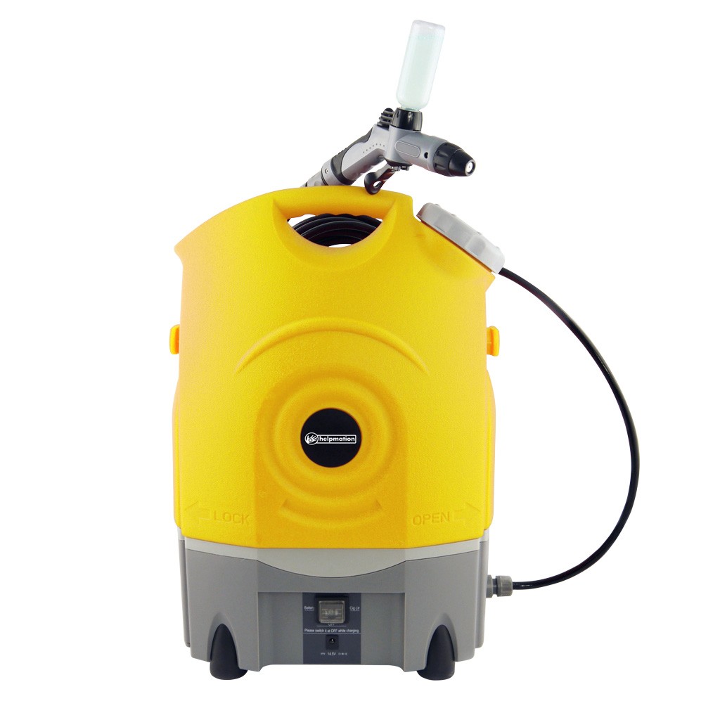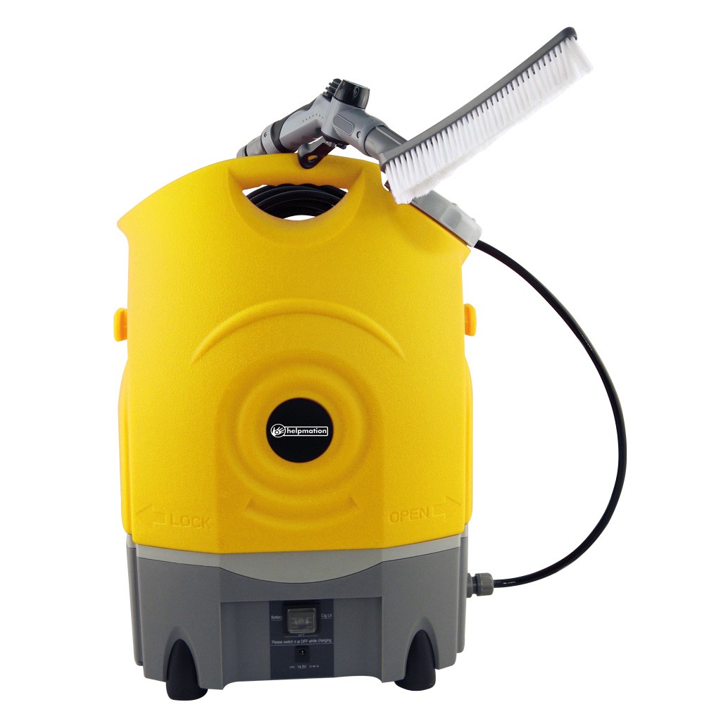 Nádrž má objem 17 litrov a môžete ju naplniť studenou alebo horúcou vodou až 60 ° C. Pomocné kolieska a popruh cez rameno uľahčujú manipuláciu a prenášanie. Súčasťou balenia je tlaková pištoľ s reguláciou prúdu vody a zásobníkom na saponát, špeciálne kefu a sprchová hlavica. Prenosná umývačka Helpmation je ľahká, kompaktná a pracuje nezávisle na zdroji elektriny a nepotrebuje hadicu s prívodom vody. Používať ju môžete na batériu alebo zapojenú do zásuvky autozapaľovača. Helpmation ponúka svojim užívateľom úplnú nezávislosť umývanie kedykoľvek a kdekoľvek potrebujú.