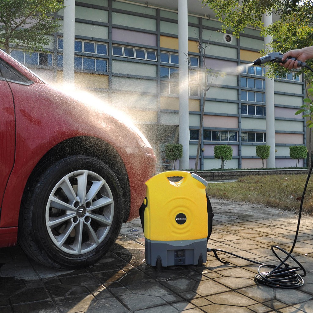Na umývanie automobilu či kolesá využijete tlakovú pištoľ, ktorú regulujete tlak vody od 3 do 9 bar. Pre naozaj dôkladné umývanie naplníte malý zásobník saponátom a ľahko ho pripojíte na tlakovú pištoľ.