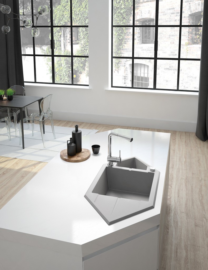 Obojstranný drez - inštalujte s misou vľavo alebo vpravo Ponuka zahŕňa špeciálny bezpečný prostriedok na čistené povrchy(GT) (celý popis)