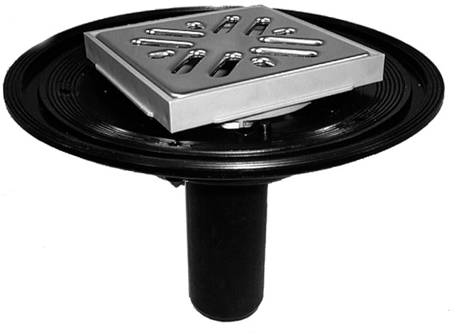 Balkónový a terasový vtok DN40 se svislým odtokem, s izolačním límcem, sítkem na nečistoty, se stavitelným nástavcem 12 - 38mm s rámečkem 100x100mm a mřížkou z nerezové oceli 94x94mm. Stavební zátka je v balení.