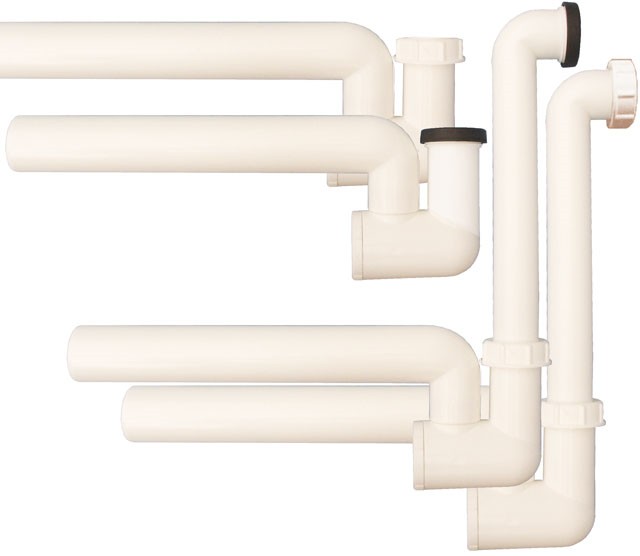 Kondenzační sifon DN40 s vodorovným odtokem a svislým nebo vodorovným připojením 5/4" (svěrné připojení) popř. d 12-18 mm (pro hladké trubičky s břitovým těsněním) s vodní zápachou uzávěrkou (60 mm) a mechanickým zápachovým uzávěrem(kulička) a čistící vložkou. Je určena pro klimatizační vzduchotechnické jednotky, odvody kondenzátu z komínů a pod.