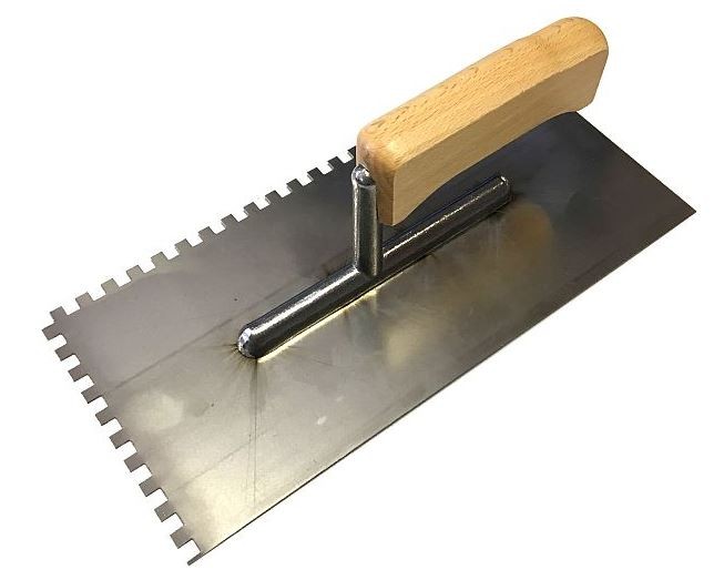 Hladidlo antikorové zubaté E6x6x6 280 x 130 x 0,75 ALU-DP. Ručka KAUFMANN (BAT / 63)