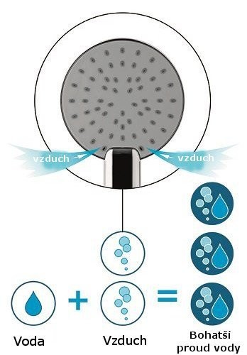 Systém miešania vody a vzduchu. Šetrí vodu a zároveň dodáva pocit väčšieho prietoku vody. Sprchou preteká 8 l/min, ale subjektívne máte pocit prietoku 14 l/min, čo je prietok vody pri klasickej vodovodnej batérii.