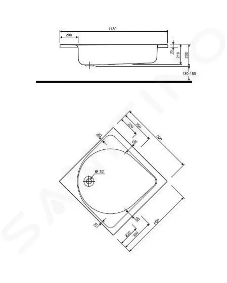 - odtok s priemerom 52 mm