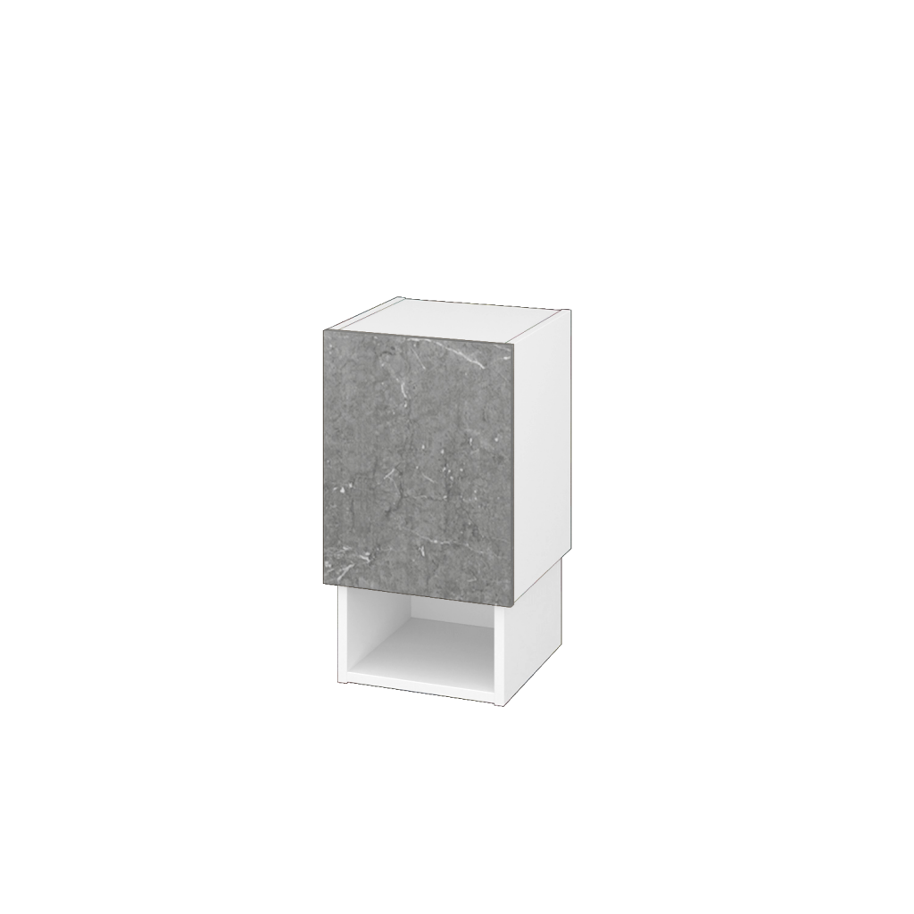 Vnútorný priestor skrinky SYDO 35 je rozdelený 1 sklenenou a nastaviteľnou policou. Skrinka je jednodverová a s možnosťou voľby pravého alebo ľavého variantu.