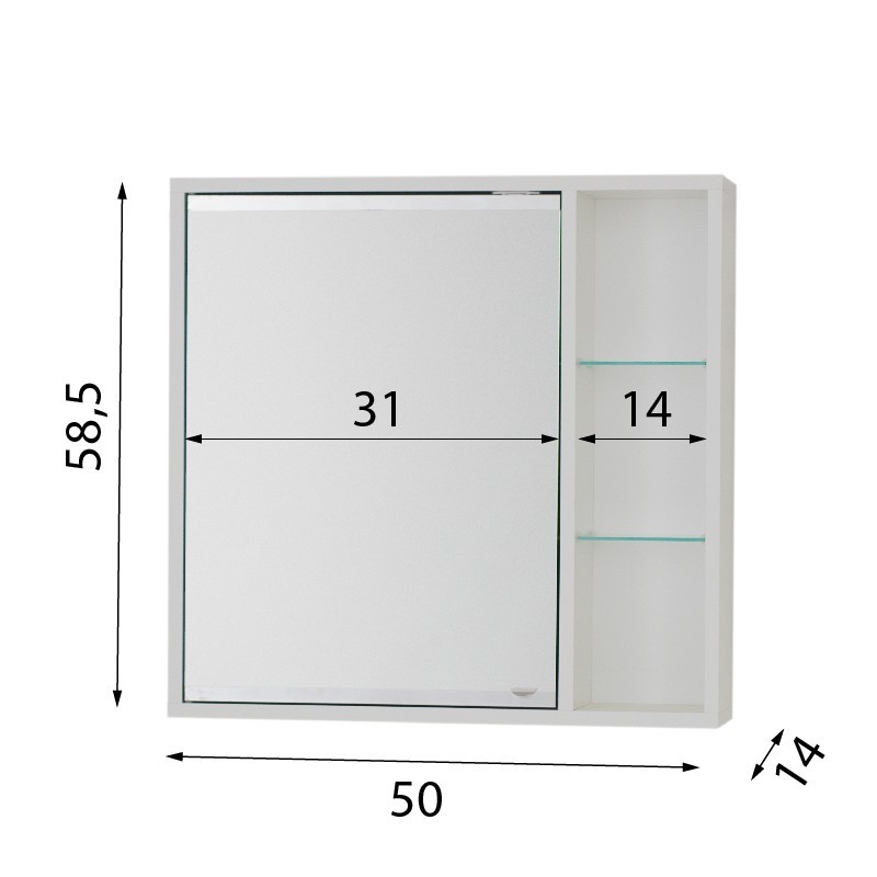 - 50 × 58,5 × 14 cm (šírka × výška × hĺbka)