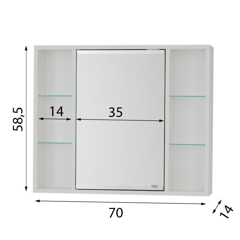 - 70 × 58,5 × 14 cm (šírka × výška × hĺbka)