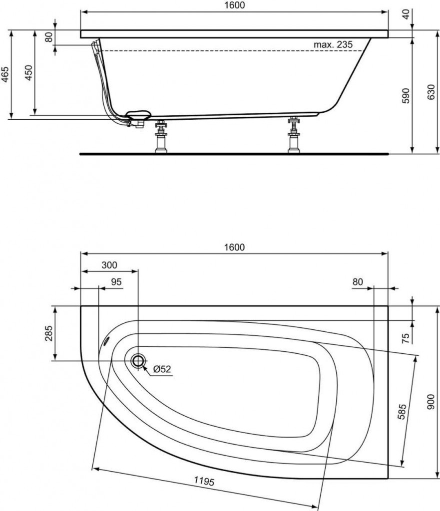 Hotline rohová vaňa asymetrická zo sanitárneho akrylátu (podľa DIN EN 263).