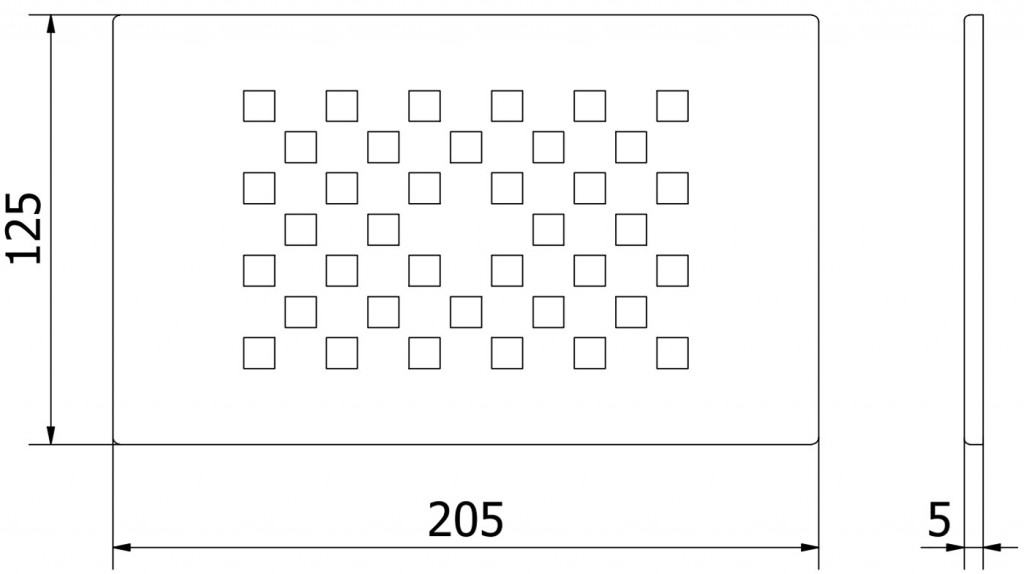 Krytka je vyrobená z nerezovej ocele a opatrená farebnou povrchovou úpravou. Dostupná je vo farbách: biela, čierna, nerez a zlato. Veľkosť krytky je 20,5 x 12,5 cm. Krytka je určená pre všetkých sprchové vaničky HUGO .